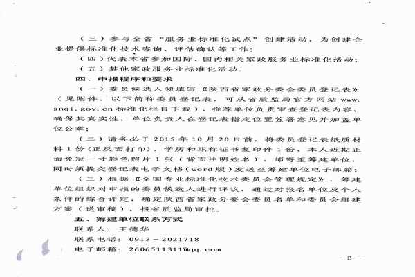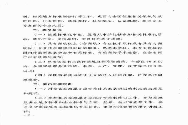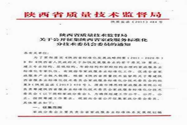 公開征集陜西省家政服務(wù)標(biāo)準(zhǔn)化分技術(shù)委員會