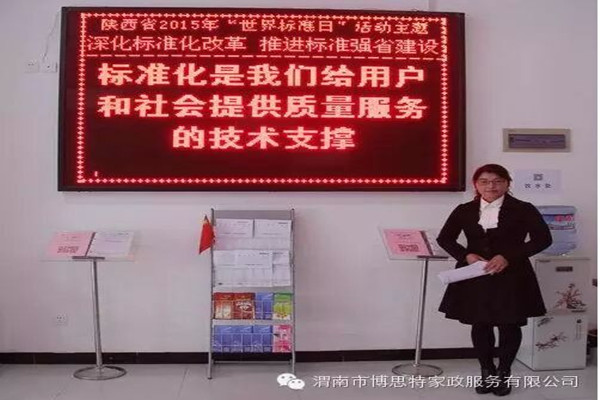 | 渭南市博思特家政服務(wù)有限公司 讓標(biāo)準(zhǔn)成為習(xí)慣 讓習(xí)慣符合標(biāo)準(zhǔn) 渭南市博思特家政服務(wù)有限公司制定標(biāo)準(zhǔn)206項(xiàng),其中國(guó)家標(biāo)準(zhǔn)53項(xiàng),行業(yè)標(biāo)準(zhǔn)5項(xiàng),地方標(biāo)準(zhǔn)4項(xiàng),企業(yè)標(biāo)準(zhǔn)144項(xiàng),辦公室引用101項(xiàng),家政部引用49項(xiàng),工程部引用34項(xiàng),人力資源部引用7項(xiàng),財(cái)務(wù)部引用5項(xiàng)。 2014年8月發(fā)布陜西省地方標(biāo)準(zhǔn)《家政服務(wù)指南 母嬰護(hù)理》、《家政服務(wù)指南 居家養(yǎng)老護(hù)理》 ; 2014 年9月發(fā)布渭南市標(biāo)準(zhǔn)《家政服務(wù) 搬家服務(wù)質(zhì)量規(guī)范》、《家政服務(wù) 育嬰服務(wù)質(zhì)量規(guī)范》、《養(yǎng)老機(jī)構(gòu)服務(wù)質(zhì)量范》; 2015年9月發(fā)布渭南市家政服務(wù)團(tuán)體(聯(lián)盟 )標(biāo)準(zhǔn)《家政服務(wù)企業(yè)等級(jí)劃分與評(píng)定》、《家政服務(wù)員培訓(xùn)質(zhì)量規(guī)范》、《家庭衛(wèi)生間清潔服務(wù)質(zhì)量規(guī)范》; 2015年送審稿已報(bào)批,為陜西省地方標(biāo)準(zhǔn)《養(yǎng)老機(jī)構(gòu)護(hù)理服務(wù)質(zhì)量規(guī)范》、《家政服務(wù)指南—家庭廚房保潔》。 博思特家政服務(wù)有限公司 標(biāo)準(zhǔn)化工作機(jī)構(gòu)設(shè)置 公司設(shè)立以總經(jīng)理為首的標(biāo)準(zhǔn)化委員會(huì),負(fù)責(zé)領(lǐng)導(dǎo)全公司的標(biāo)準(zhǔn)化工作,公司標(biāo)準(zhǔn)化組織由四個(gè)層次組成,即公司標(biāo)準(zhǔn)化管理委員會(huì),公司標(biāo)準(zhǔn)化工作管理小組(設(shè)在辦公室),各職能部門標(biāo)準(zhǔn)化主管領(lǐng)導(dǎo)及部門標(biāo)準(zhǔn)化兼職管理員組成的公司標(biāo)準(zhǔn)體系工作組。 1.標(biāo)準(zhǔn)化工作機(jī)構(gòu)的最高領(lǐng)導(dǎo)者是公司總經(jīng)理; 2.標(biāo)準(zhǔn)化委員會(huì)由總經(jīng)理、質(zhì)量體系的管理者代表(常務(wù)副總經(jīng)理)。公司主要職責(zé)能部門負(fù)責(zé)人及標(biāo)準(zhǔn)化有關(guān)專家組成,由總經(jīng)理擔(dān)任標(biāo)準(zhǔn)化委員會(huì)主任,標(biāo)準(zhǔn)化委員會(huì)設(shè)秘書組,由公司辦公室主任擔(dān)任秘書長(zhǎng); 3.公司辦公室是標(biāo)準(zhǔn)委員會(huì)日常工作和對(duì)公司及公司各部門標(biāo)準(zhǔn)化工作統(tǒng)一歸口管理; 4.標(biāo)準(zhǔn)體系工作組由公司各部室標(biāo)準(zhǔn)化主管領(lǐng)導(dǎo)和兼職標(biāo)準(zhǔn)化管理員組成,業(yè)務(wù)上受公司辦公室指導(dǎo),承擔(dān)所在部門的標(biāo)準(zhǔn)化管理職責(zé)。 陜西地方標(biāo)準(zhǔn)宣貫----家政服務(wù)指南 母嬰護(hù)理 宣貫單位:渭南市博思特家政服務(wù) 今日宣貫內(nèi)容: