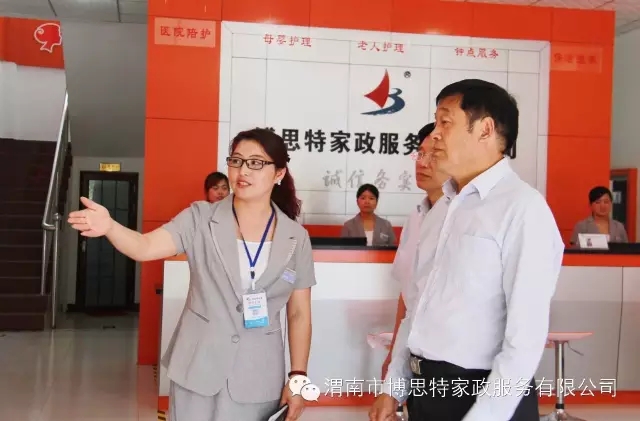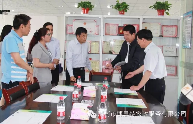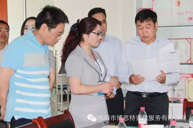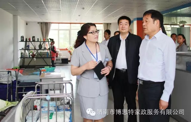 2016年5月11日上午10時,渭南市委副書記王春陽輕車簡從來博思特家政服務(wù)有限公司調(diào)研家政服務(wù)標準化建設(shè)工作。